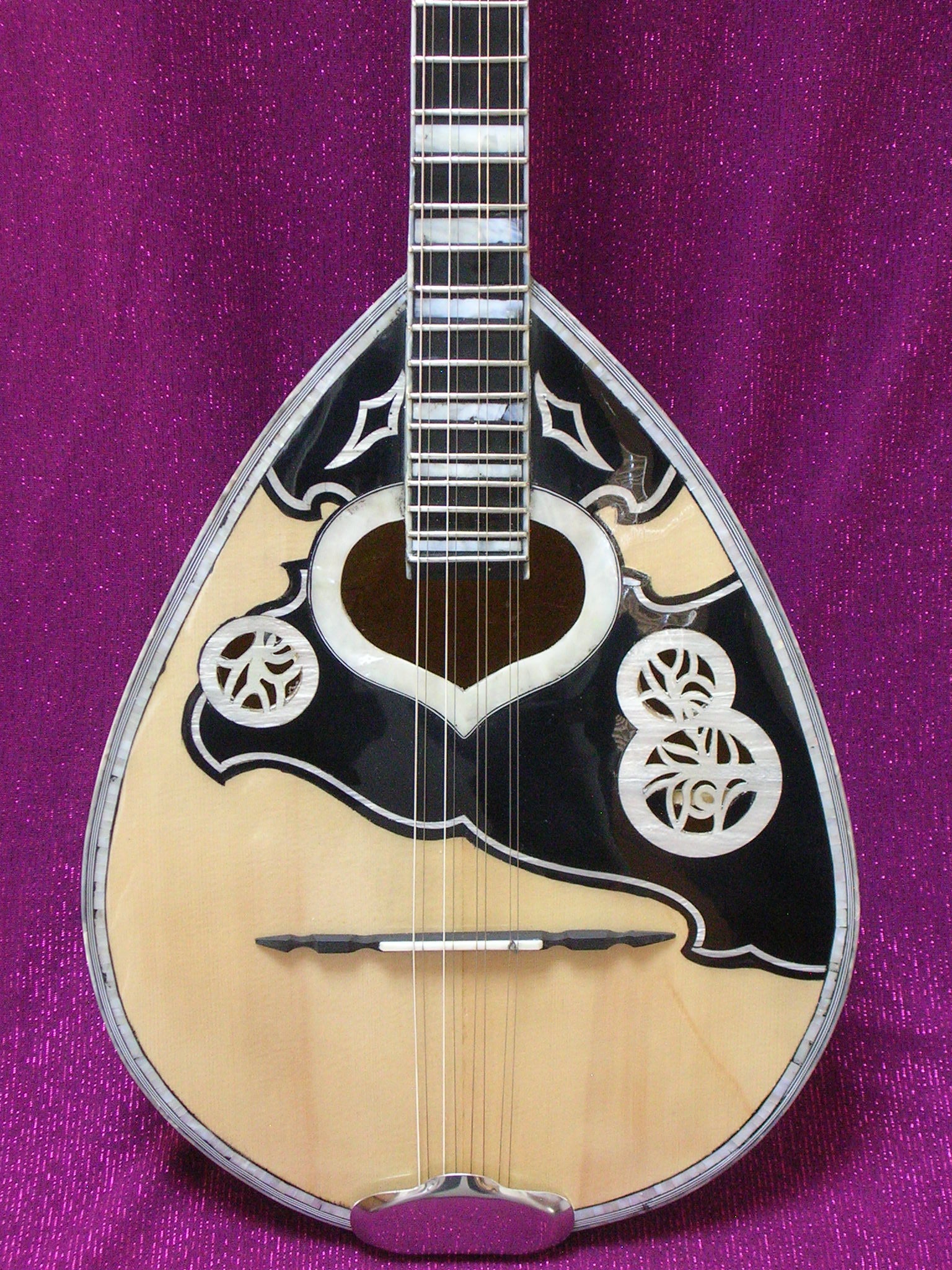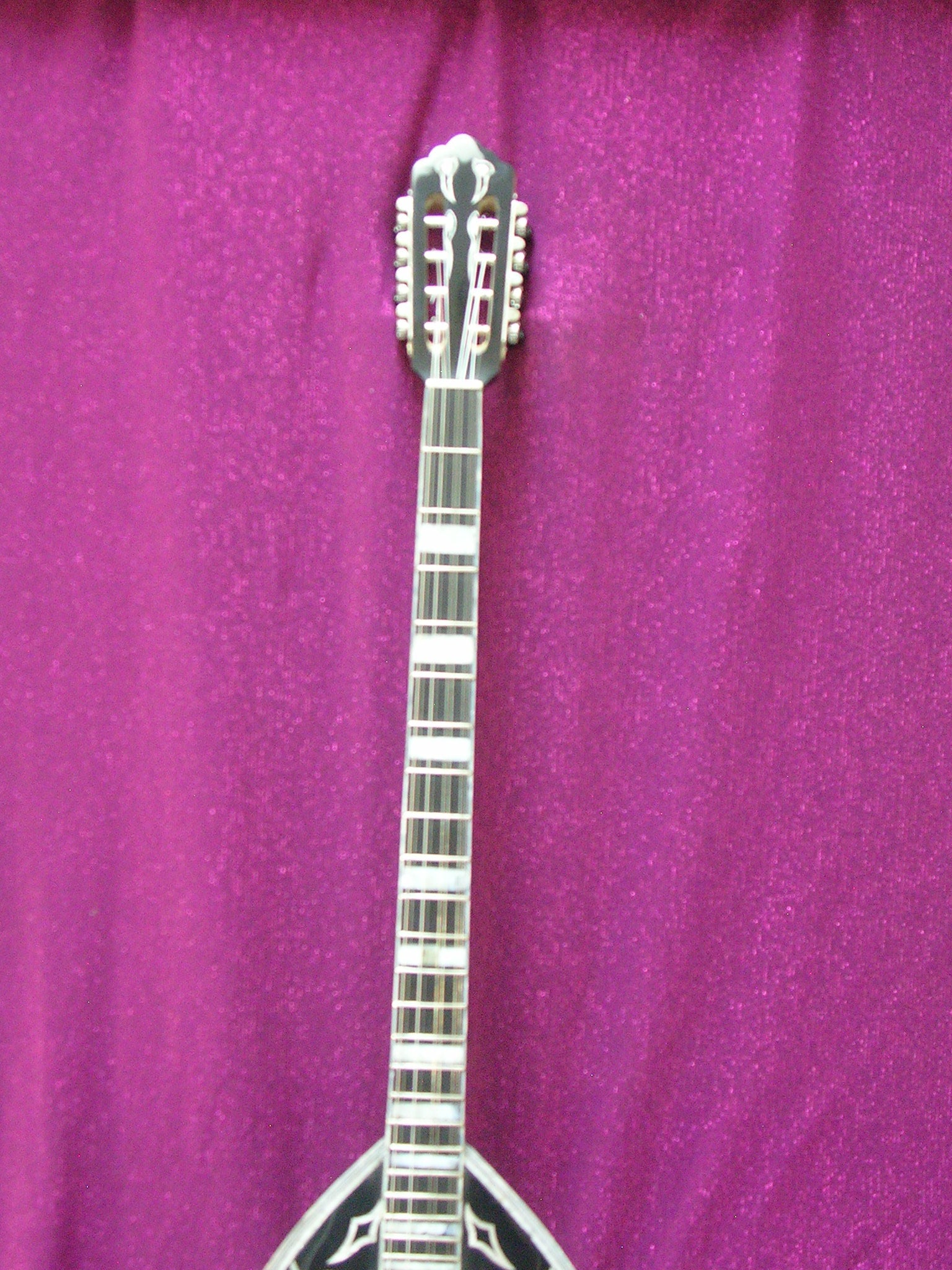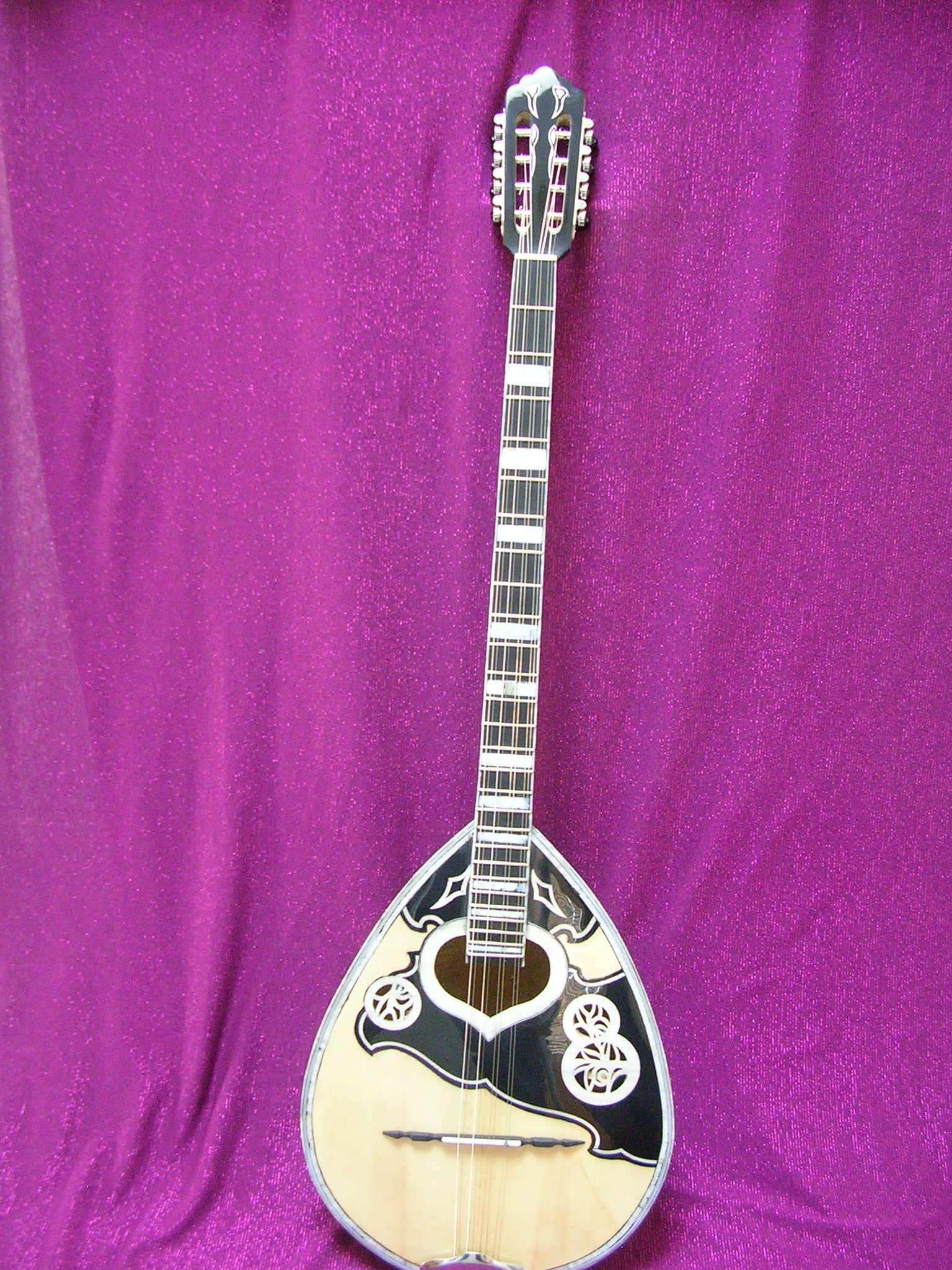 PROFESSIONAL GRADE BY EFRAIMIDIS. BODY IS GROOVED INDIAN PALISANDER. MOTHER OF PEARL ORNAMENTATION. WHITE ACRYLIC SHELL FIGURES FRET MARKERS. EBONY FINGER BOARD. 5 LAMINATIONS NECK WITH TWO WAY ADJUSTABLE TRUSS ROD.